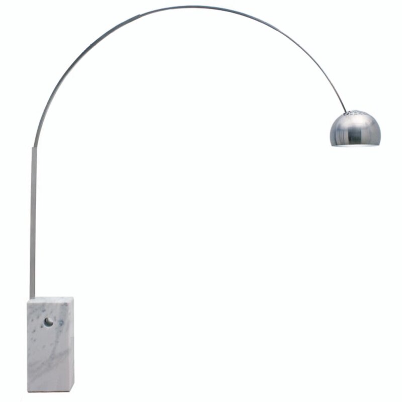 Der Entwurf für diese attraktive Stehlampe stammt von Achille Castiglioni, der sie 1962 für den italienischen Leuchtenhersteller Flos kreierte. Achille Castiglioni war ein Industriedesigner, der für sein funktionelles Design berühmt war. Heute ist die Lampe zu einem eindrucksvollen Klassiker und Boten des modernen Designs geworden. Castiglionis Arco Bogenleuchte beeindruckt durch zeitlosen Stil in schlichter Eleganz. Der Standfuß besteht aus weißem Marmor.